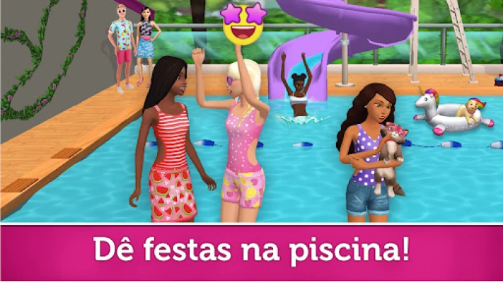 Em Barbie na Casa de Sonho, crie e personalize sua própria aventura. Desenhe divisões, conheça amigos e pets, e participe em atividades divertidas como cozinhar, dançar e festas na piscina. Explore Malibu no descapotável cor-de-rosa e vista a Barbie com visuais super na moda. Uma experiência emocionante onde tudo é possível.