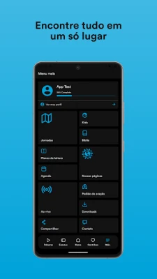 Mantenha-se sempre informado e participe ativamente da vida da igreja através de uma agenda dinâmica e intuitiva. Explore os próximos eventos, workshops e celebrações, inscreva-se com facilidade e tenha todos os seus ingressos organizados e acessíveis a qualquer momento. Além disso, fortaleça seus laços com outros membros, unindo-se a grupos de interesse específicos, onde você poderá receber conteúdo direcionado e ter sua carteirinha de membro digital sempre à mão, facilitando sua integração e participação.