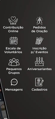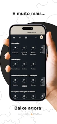 Mantenha-se sempre informado e engajado com uma gama diversificada de funcionalidades. O Mural de Avisos permite que você esteja a par de todas as novidades e se comunique com outros membros, enquanto a seção de Conteúdos oferece uma biblioteca rica em áudios e vídeos para edificação. Gerencie sua participação em eventos de todo tipo – desde seminários e congressos até acampamentos e cursos de formação. Sua Agenda pessoal exibe cultos, eventos e sua escala em ministérios, garantindo que você nunca perca um compromisso importante. Além disso, em "Meu Perfil", suas informações cadastrais na Igreja estão sempre acessíveis para consulta.