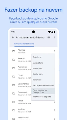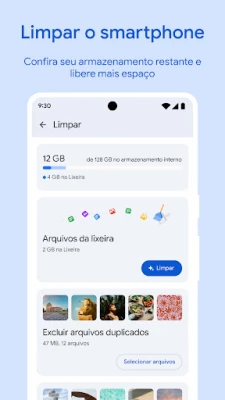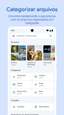 O Files do Google otimiza o armazenamento do seu dispositivo. Libere espaço, encontre arquivos rapidamente com pesquisa inteligente, compartilhe-os off-line e mantenha seus dados seguros com proteção extra.