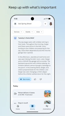 Visualize e analise rapidamente os eventos importantes da sua casa através da interface otimizada de histórico e visualização em direto das câmaras. Nunca foi tão simples rever o que aconteceu, permitindo-lhe agir com informação precisa. Leve a interação com o seu lar para o próximo nível: com o Gemini para Home, basta expressar o que pretende e os seus dispositivos responderão, oferecendo um controlo por voz natural e inovador.