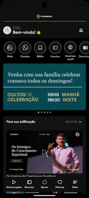 Experimente uma nova forma de se conectar com a sua comunidade de fé, onde quer que você esteja. Este aplicativo inovador foi cuidadosamente projetado para ser seu elo direto com a igreja, oferecendo um portal rico em vídeos inspiradores, conteúdos edificantes e publicações relevantes que enriquecem sua jornada espiritual. Nunca mais perca uma mensagem importante ou um sermão que transforma. E para os momentos de desconexão, a funcionalidade de acesso offline garante que seus materiais favoritos estejam sempre ao seu alcance, sem depender da internet.