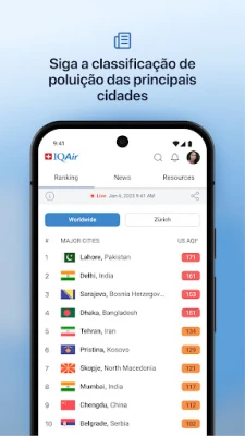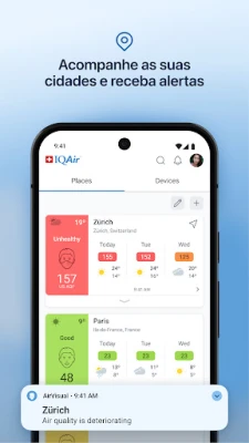 Obtenha informações fiáveis e seguras sobre a qualidade do ar global. Este app oferece dados precisos de mais de 500.000 locais, através de estações governamentais e sensores IQAir validados. Mantenha-se informado sobre o ar que respira, onde quer que esteja.